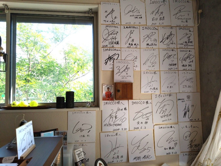 あるサッカー選手が初来店して以来、他の選手へ口伝えで、歴代の選手が続々来店するように。いつしかサインでいっぱいになったそうです。