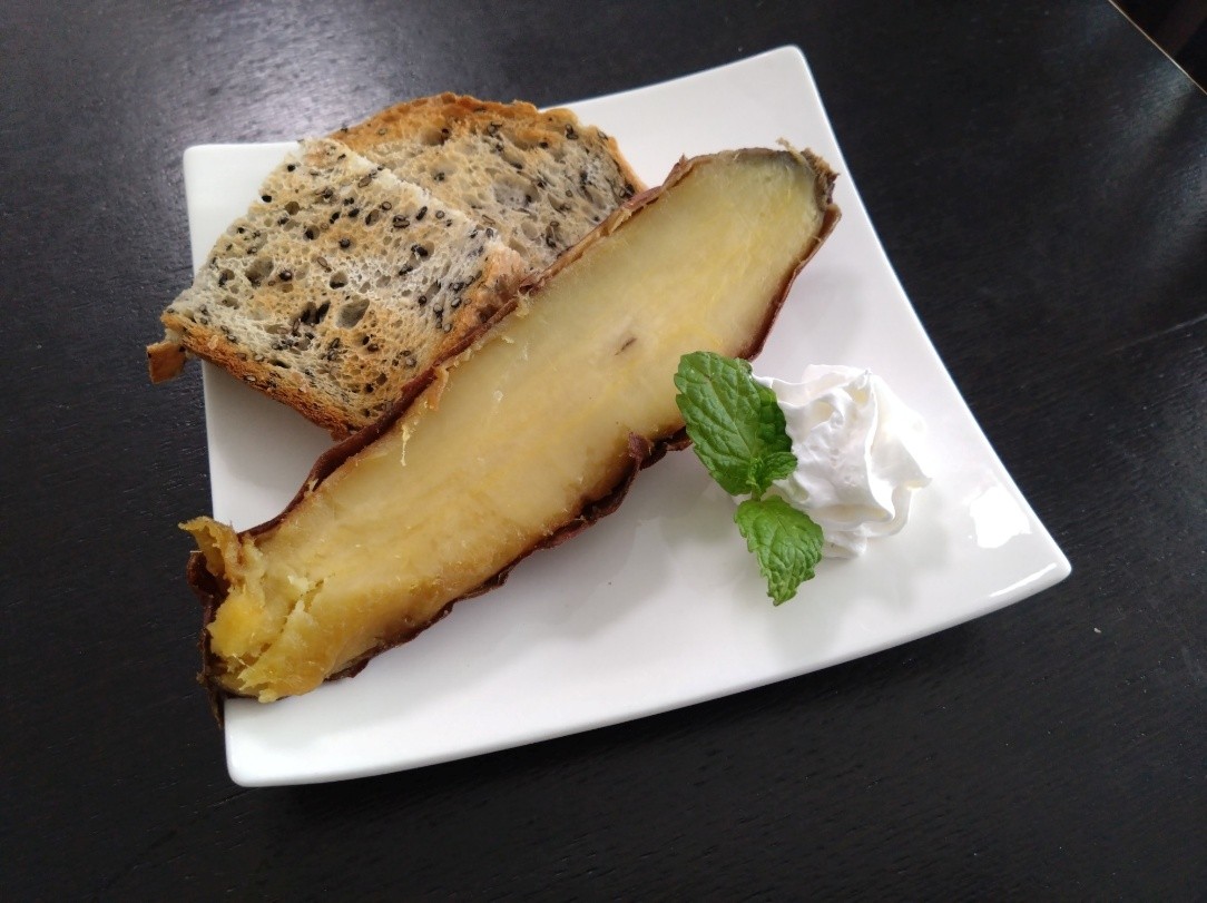 パンになめらかな焼きいもを塗ると相性バツグン。まるで、さつまいもジャムのようでした。