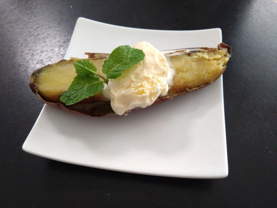 温かい焼きいもは、すぐ食べられるように袋に入って提供。後味がすっきりとしていて、とてもなめらかでした。