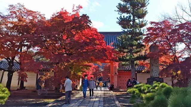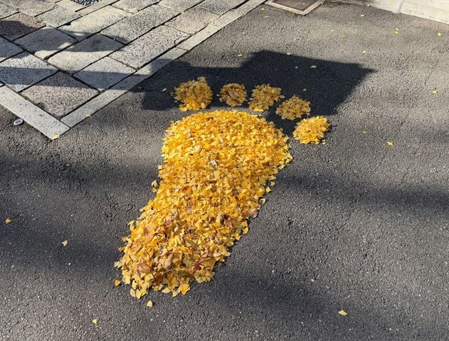さらに護王神社を訪れた時期はイチョウの紅葉が最盛期で、宮司が落ち葉で足形に掃き清めておられました。