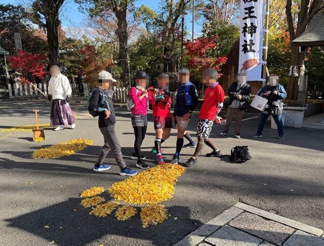 護王神社にはお子様からご高齢の方まで、足腰の難儀でお悩みの方やスポーツ選手など、全国から多くの参拝者がお参りにやってきますが、この日も、ランニングの愛好家の皆さんが記念に写真撮影をされていました。
