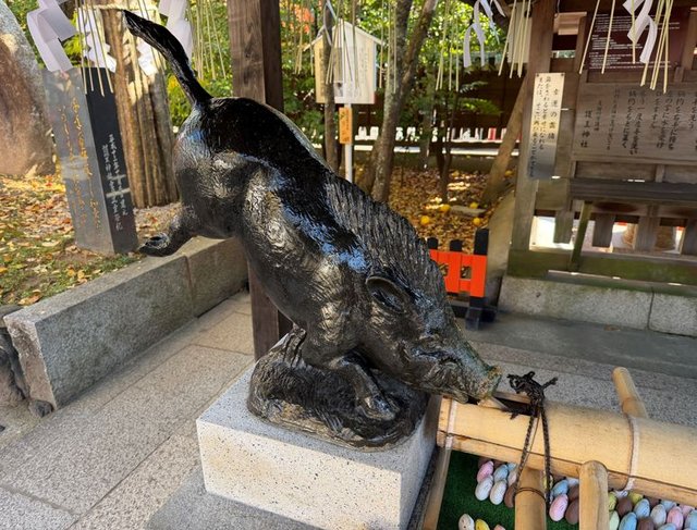 ちなみに、手水舎のイノシシは鼻を撫でると幸運がおとずれるそうです。