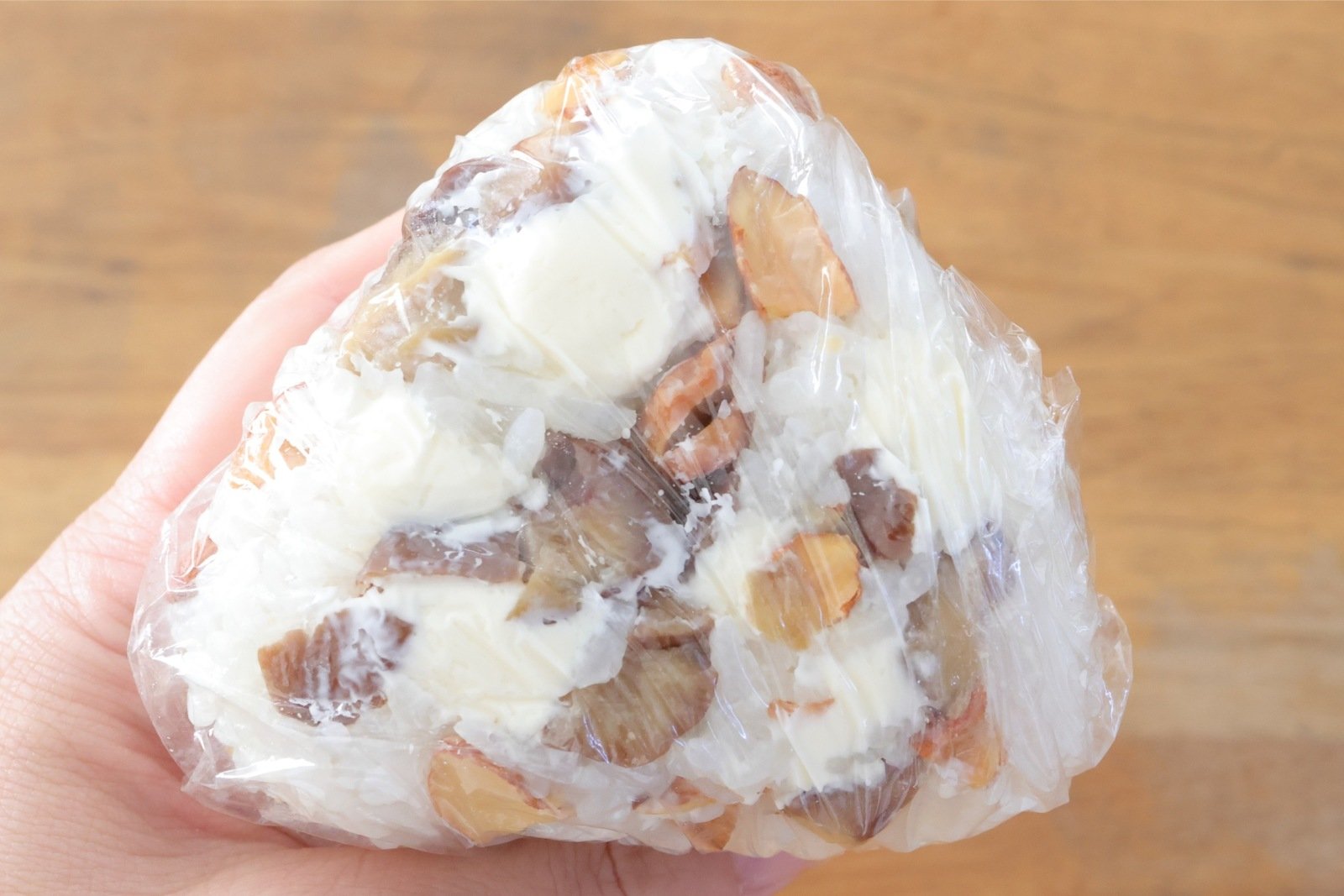 「甘栗とクリームチーズとアーモンドのおにぎり」の作り方(調理時間:3分)