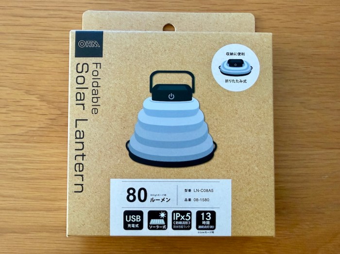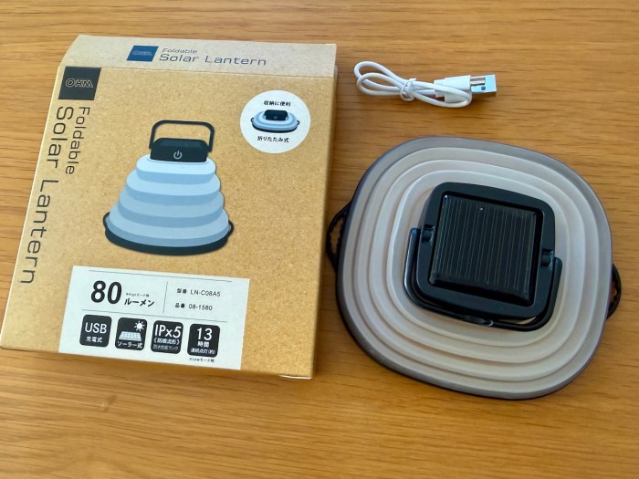 参考リンク:カインズ「折りたたみ式ソーラーランタン 80ルーメン LN-C08A5」