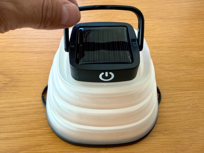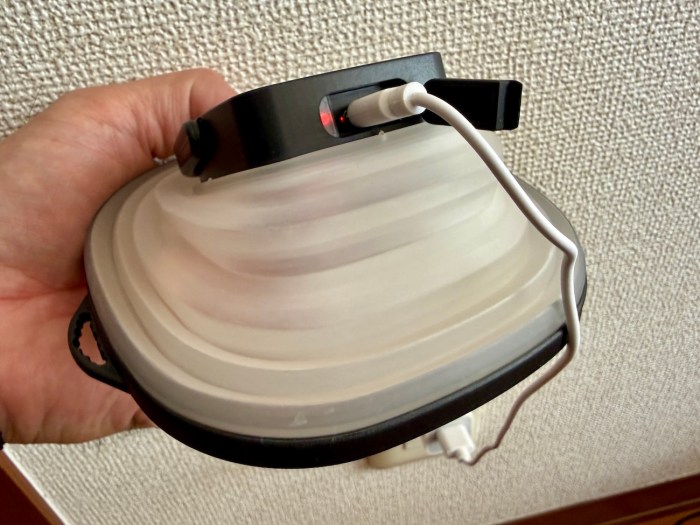 んで冒頭でもお伝えしたように、このランタンはソーラー充電対応。天面にソーラーパネルが搭載されており、日中に太陽光で充電できる。
