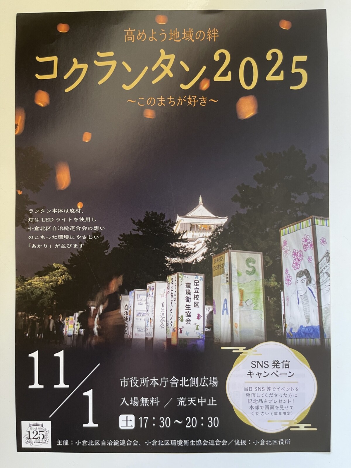 北九州市役所・本庁舎の北側広場で11月1日、小倉北区全25校区が参加して地域の絆と交流を深めるイベント「コクランタン2025」が開催されます。