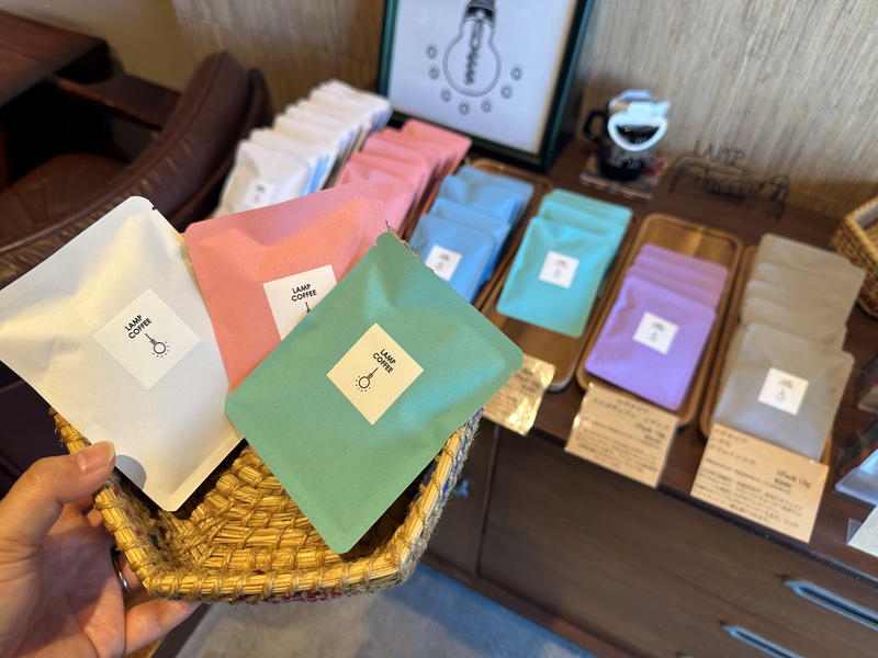 ドリップコーヒーとして出している種類の豆は、100g単位で販売もしています。水出し専用パックも販売しており、アイスコーヒー派の人の人にも嬉しいですね。中でも目を引くのが、可愛らしいカラフルなパッケージ。こちらは、オンメニューしているコーヒー豆の1回用ドリップパックです。