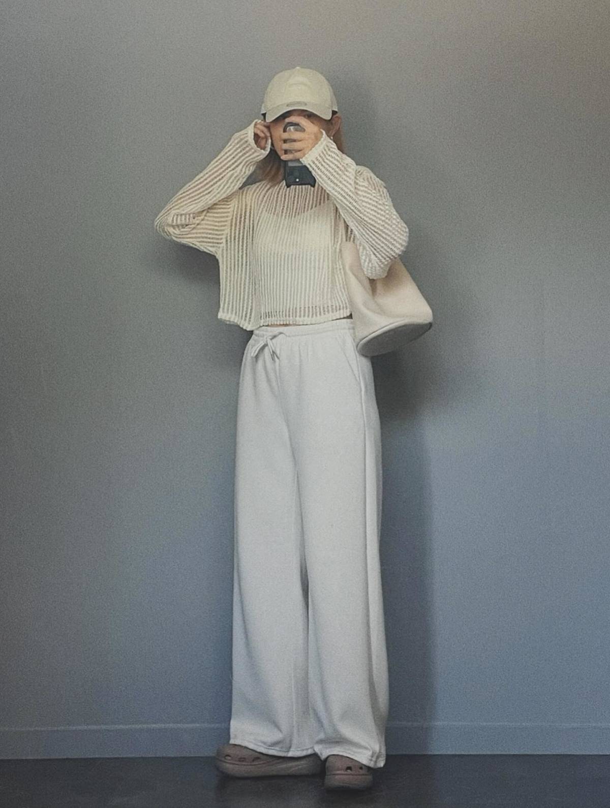 白パンツをカジュアルなファッションに取り入れたいときは、スウェット素材のワイドシルエットを選んでみて!