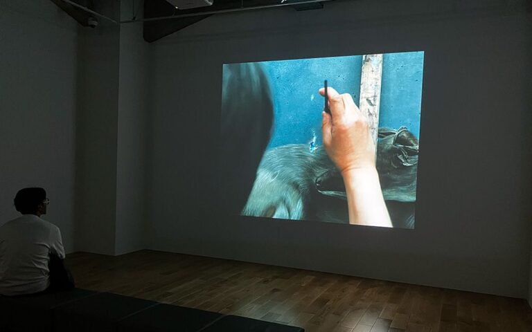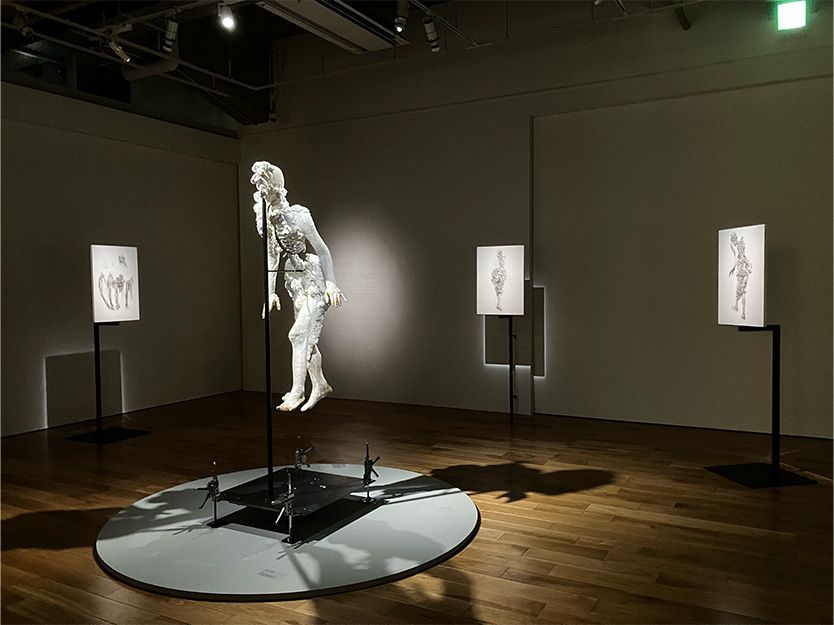 制作過程を記録した映像も上映され、諏訪が静かに手を動かし、素材を組み替えながら、失われた身体を呼び戻していく様子が映し出されています。