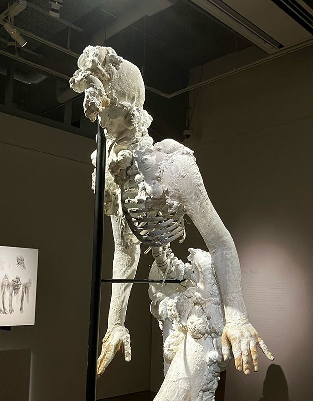 皮膚、筋肉、骨の関係を観察し、生命の不在を逆説的に描き出しています。