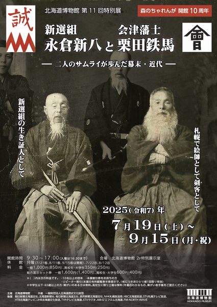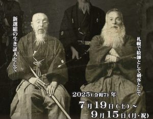 2025年7月19日(土)~9月15日(月・祝)には、第11回特別展「新選組永倉新八と会津藩士栗田鉄馬‐二人のサムライが歩んだ幕末・近代‐」が開催される。新選組の幹部隊士として、会津藩の一員として、幕末の京都で出会った二人は、その後、それぞれに特異な人生を歩み、ともに大正期に北海道で、その生涯を終えている。
