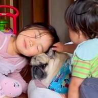 雷を怖がって震えてしまった犬→1歳の女の子が心配をして…愛おしくて泣ける『まさかの行動』が45万再生「ジーンとした」「なんて優しいの」