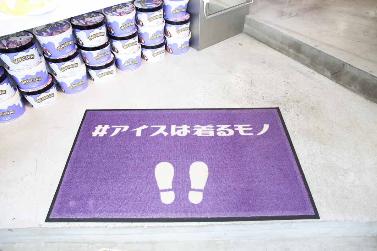 まず、「#アイスは着るモノ」のラグのインパクトが抜群です。 シュールなんですが、この空間にあるとかわいく見えちゃいます。