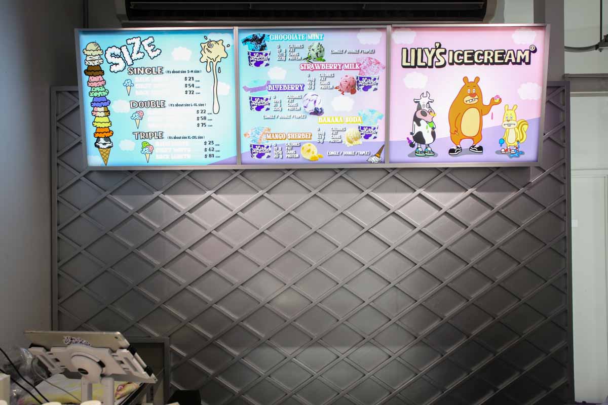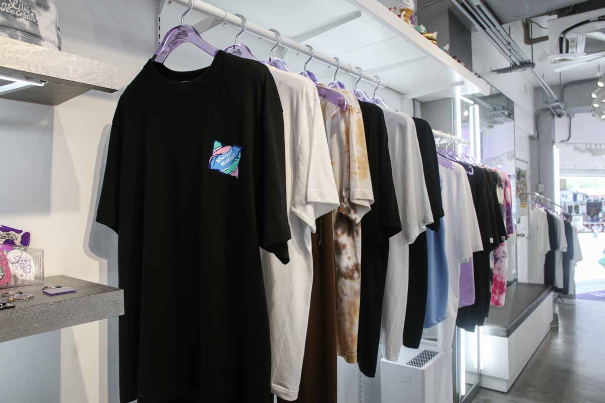 レジ上にあるデジタルサイネージは、一見するとアイスのメニューのようですが、実はTシャツのサイズ表記なのだそう。 細かいところまでアイスクリーム屋さんみたいで、とてもかわいいですよね!