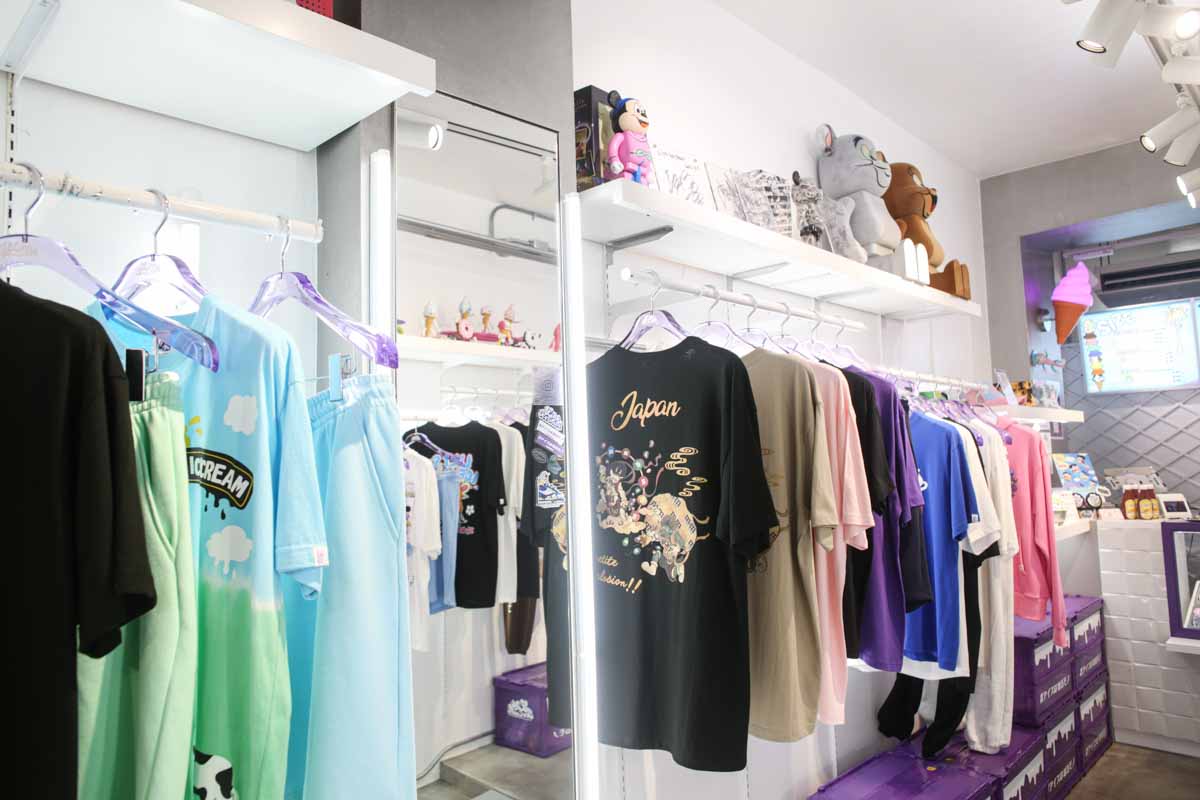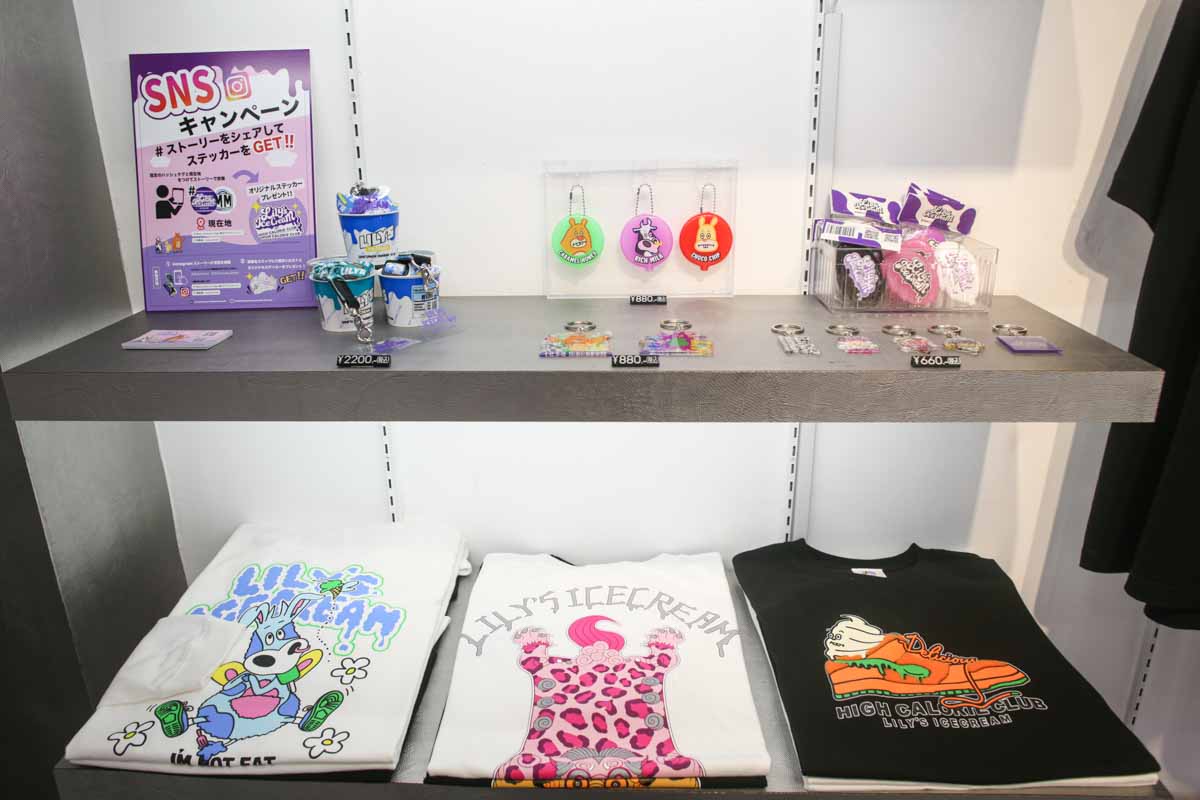 Lily’s icecreamのアイテムは、高校生やダンサーのほか、ギャル系ファッションを好む方から特に人気ですが、落ち着いた色合いのアイテムも取り揃えていることもあって、その客層は10代〜80代までと幅広いそうです。 スタッフさんのおばあさまもLily’s icecreamの服を着ていると聞いて驚きましたが、ファッションを楽しんでいらっしゃるんだなと微笑ましい気持ちになりました。 また、アイテムはユニセックスのものが多く、オーバーサイズで作っているため、男女の比率もそこまでばらつきがないそうです。 ただ、そんななかでスタッフさんのお好みは「レディース用のアイテム」なんだとか。 取材日にはなかったのですが、夏になるとクロップドの服が販売されるそうで、そちらは体にフィットするような着心地なのだそうです。 クロップドは冬用(長袖)も出るそうなので、気になる方はチェックしてみてください!