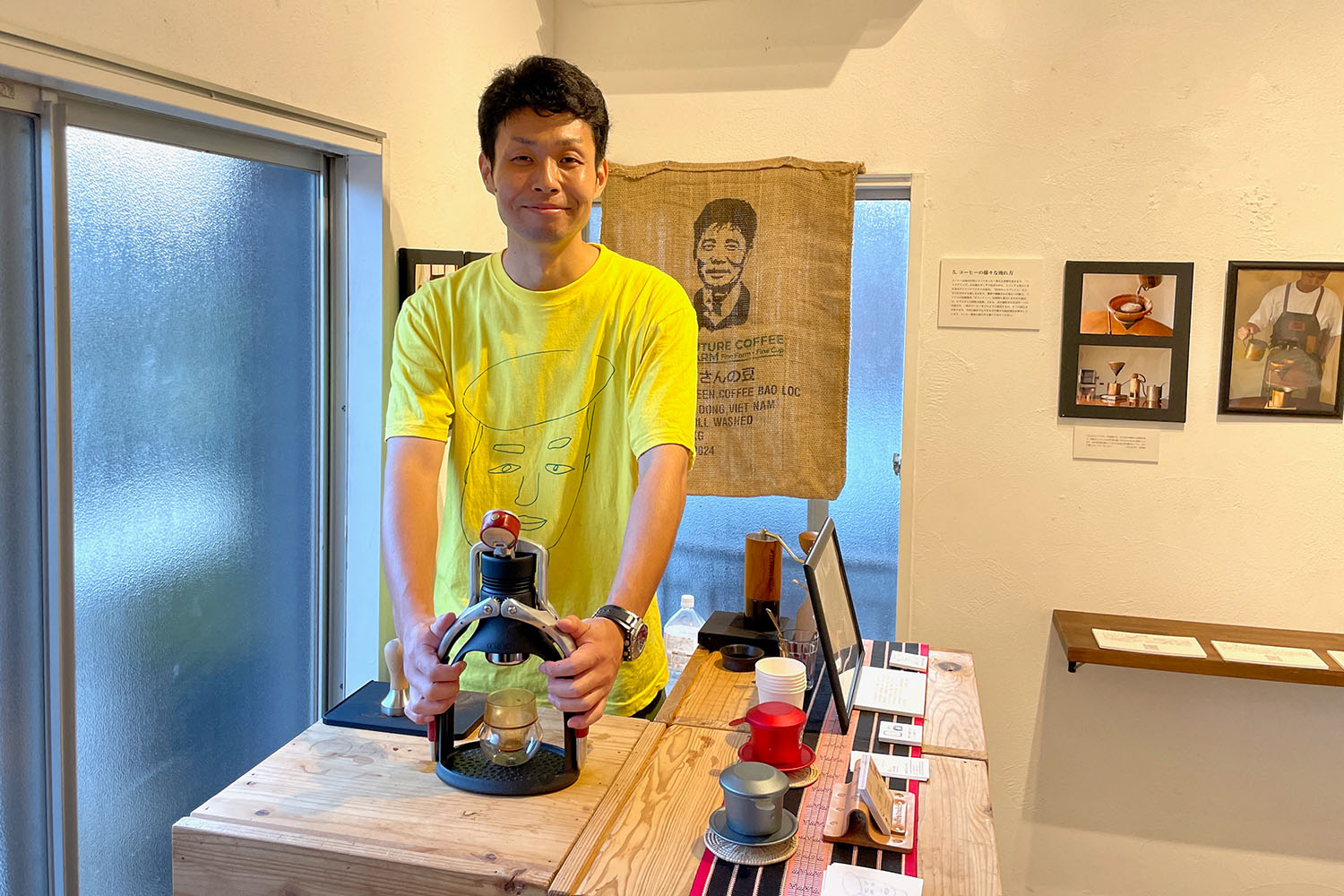 五感でコーヒーを楽しむというコンセプト。実際に豆を触って、焙煎前後の重さの違いを知るコーナーに加え……最後には、竹内さん自ら抽出した一杯が提供されます。