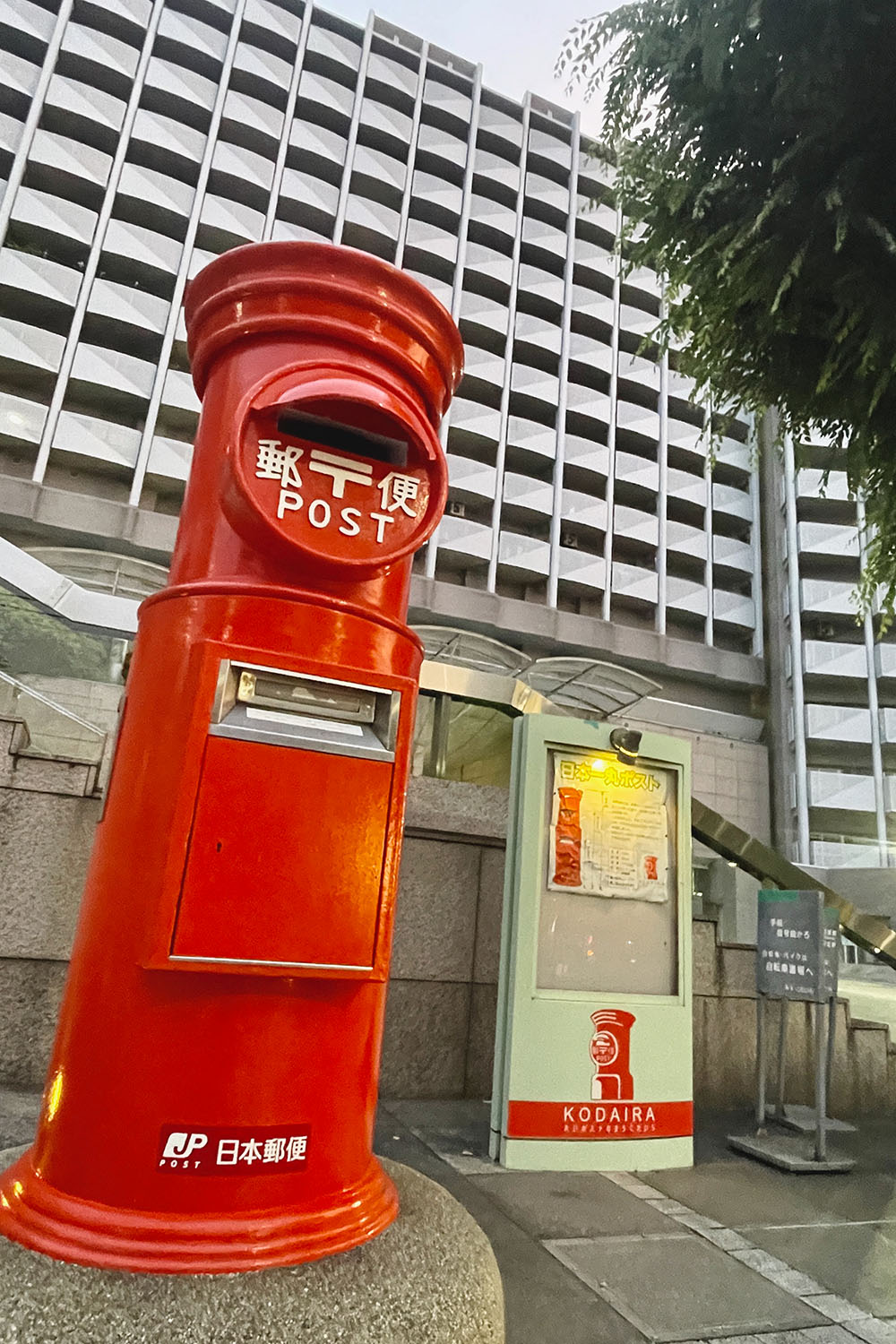 小平市内には、昔ながらの赤い円筒ポストが多数現存(都内で最多の保有数)。それを記念したのが、高さ2.8mのこのポスト!