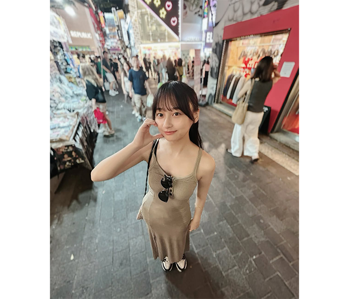 影山優佳、タイトなキャミソールワンピースでオフ満喫!