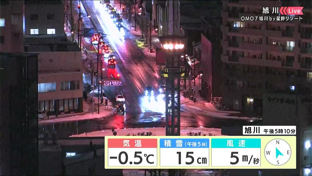 あす朝も滑りそうですね。今日とけた雪がツルツルに凍りそうです。日中は晴れて寒さが緩みます。夜遅くは天気が崩れますが、気温が高いので雨が降るでしょう。積雪の多い北区、東区は落雪や泥はねにも注意して下さい。