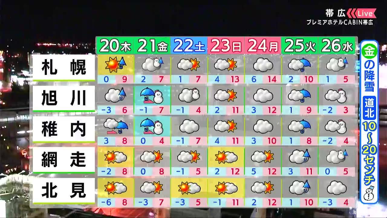 あす20日(木)の札幌です!朝昼晩の天気をもんすけでお伝えします!