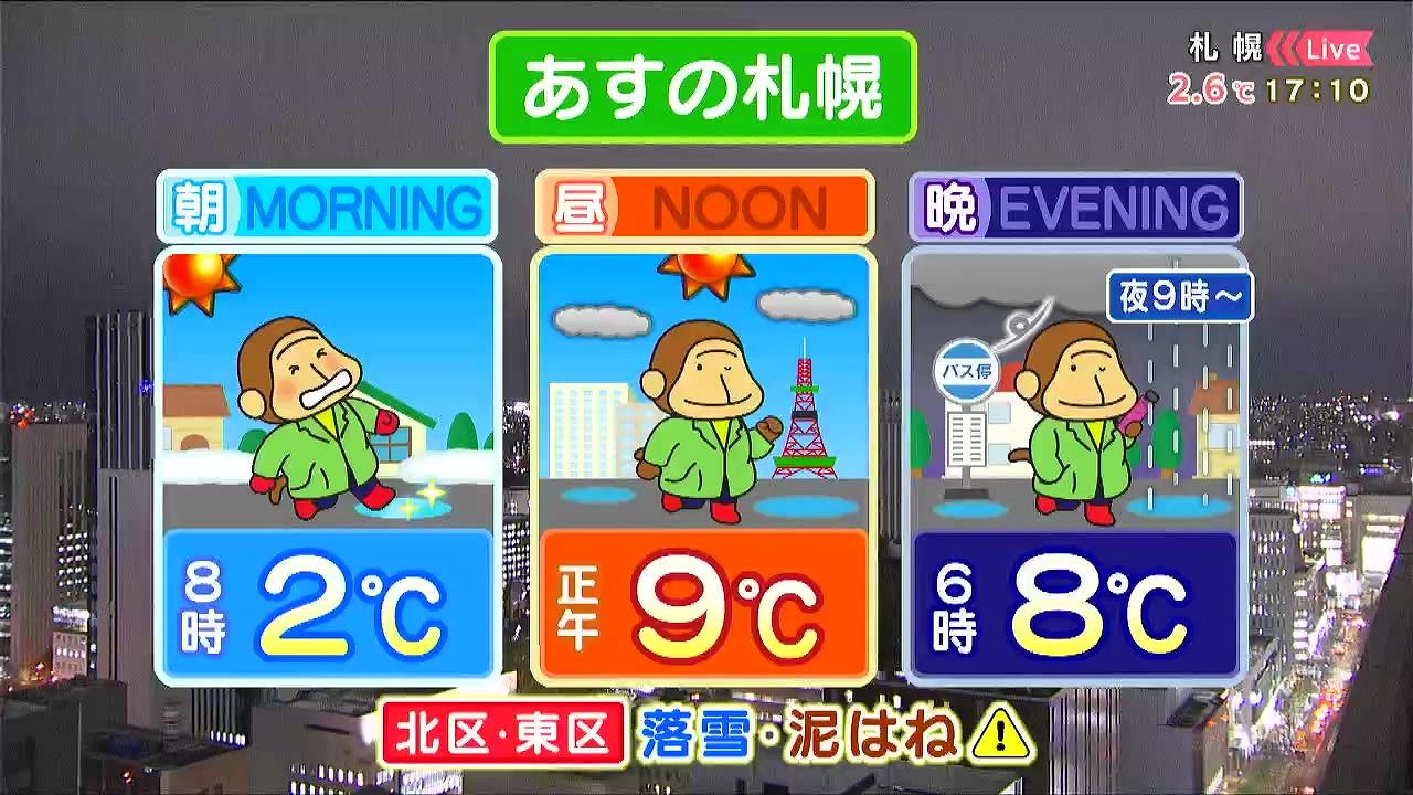 ・あすの札幌の朝昼晩の天気