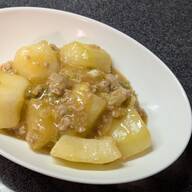 ③ 長芋の皮をむいてすりおろし、ボウルに移す。【A】を加えてよく混ぜ、②にかけたら、完成!