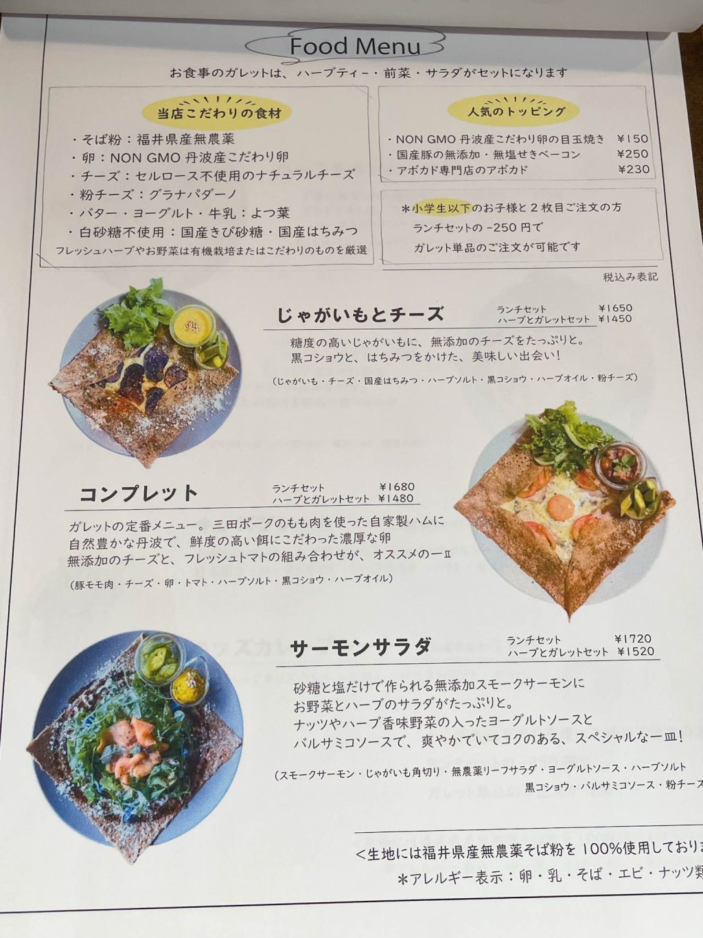 こちらのランチセットはガレットのお値段で変わるので、今回は人気のガレット「コンプレット(1680円)」での価格となります。