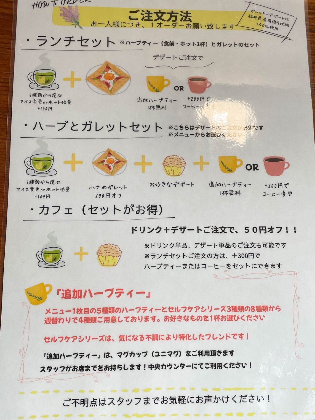 このランチセットにデザートを追加すると、おかわりハーブティーがもう1杯!