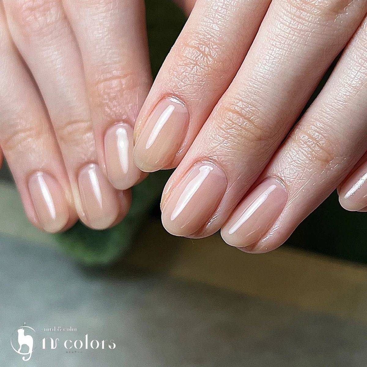 ヌーディーなクリアベージュは自爪の色に近いので、働く女性にもおすすめ!