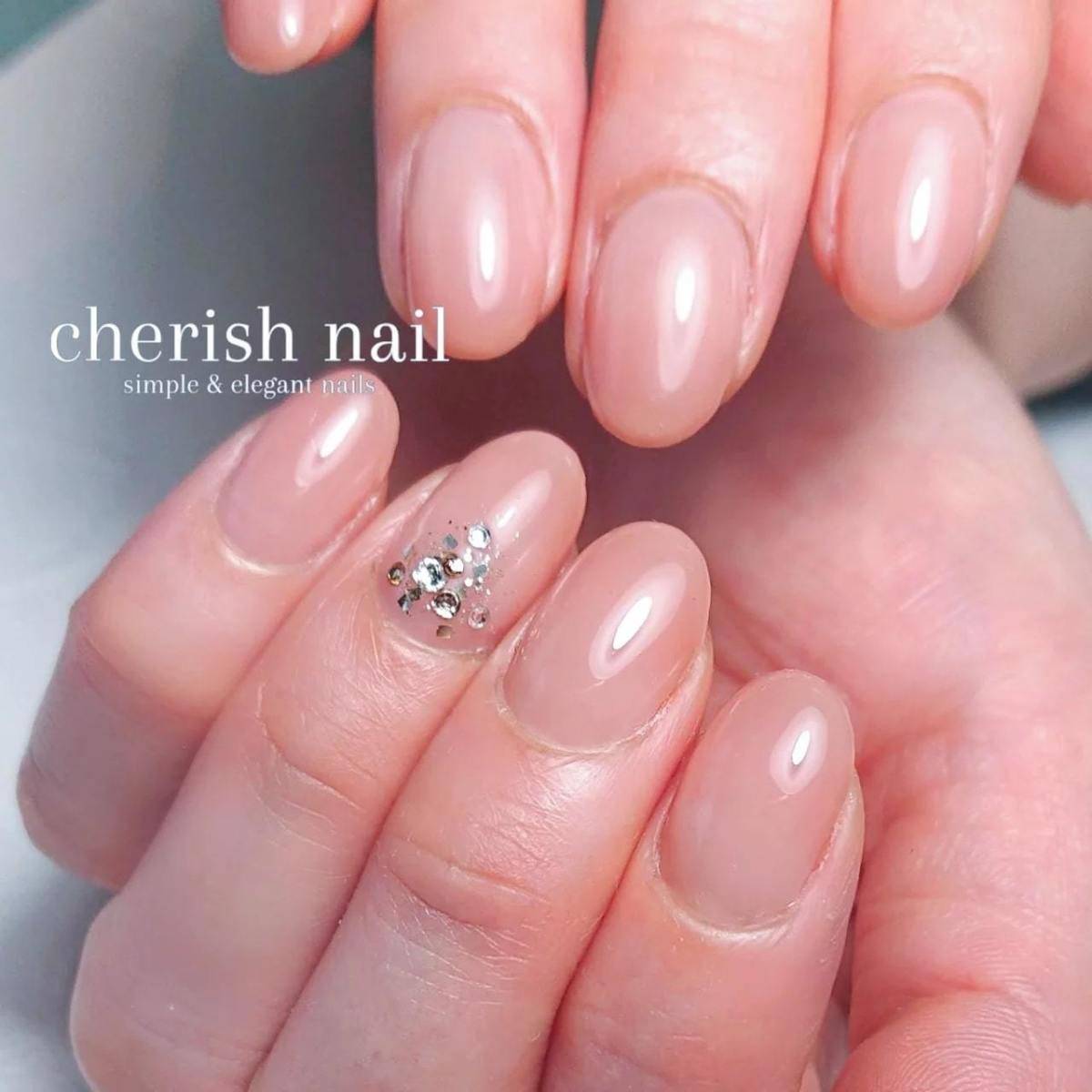 ラインストーンで、血色感ネイルに煌めきをプラスすると◎