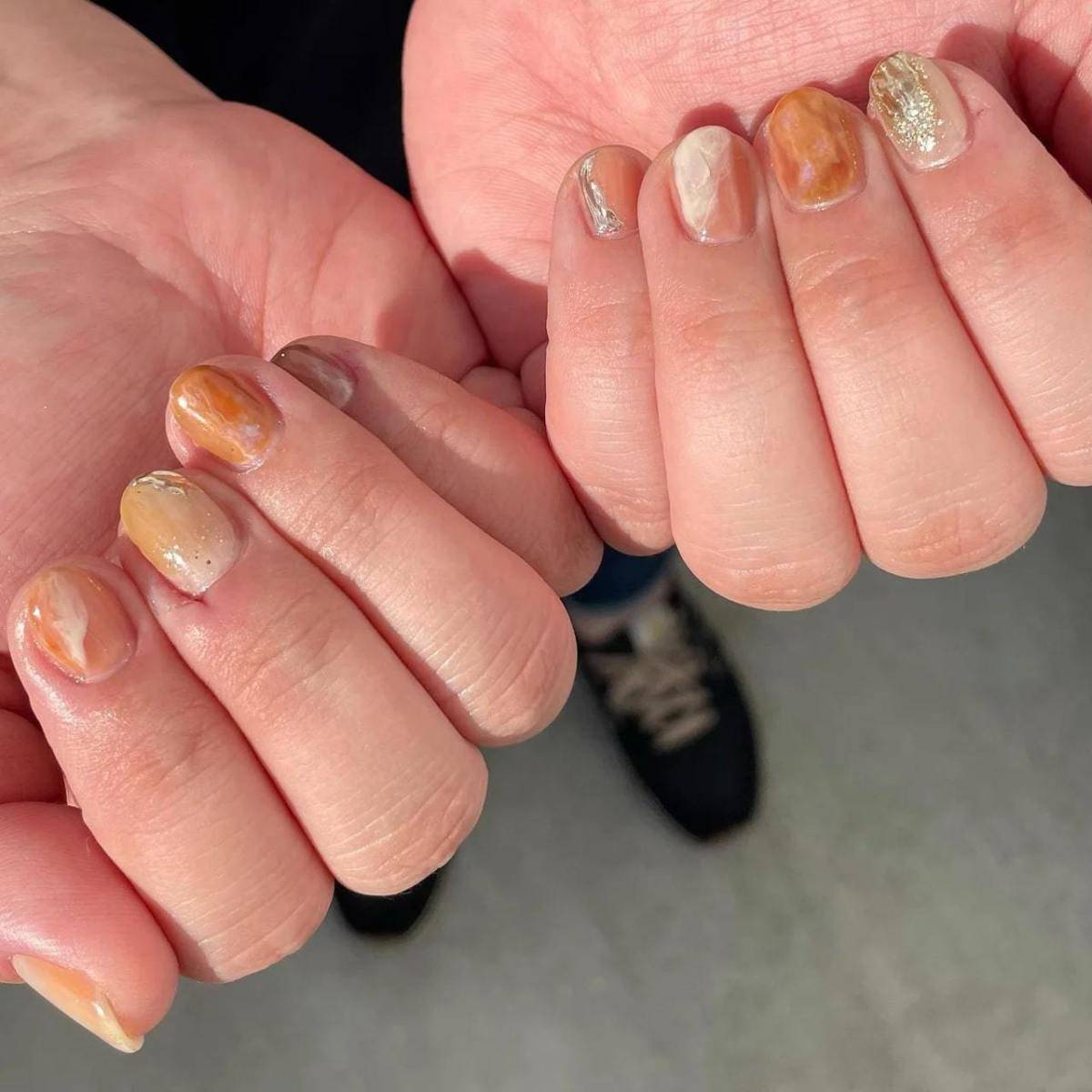 【冬編】おすすめの血色感ネイル▶︎キラキラ×透け感オレンジベージュ