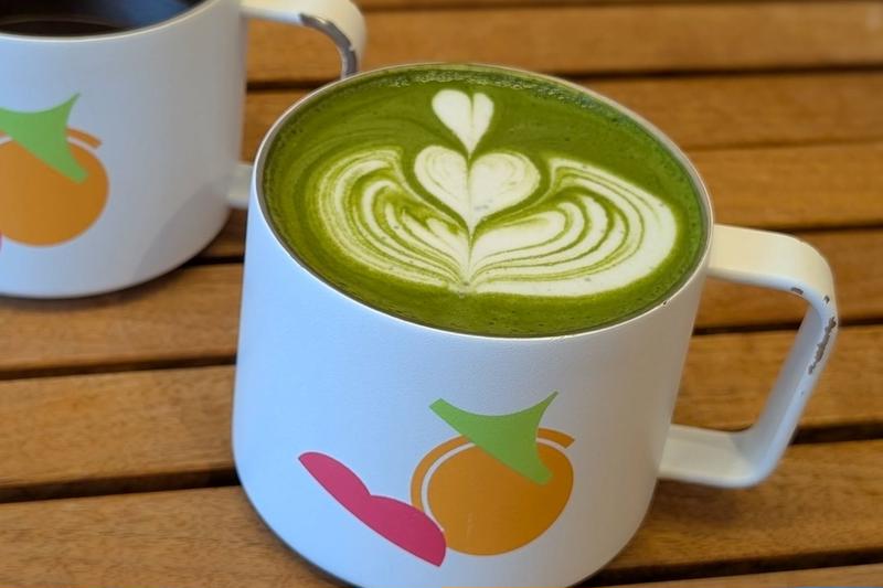 美しいハート型のラテアートが目を引く『抹茶ラテ』800円。風味豊かな抹茶の旨味が口いっぱいに広がります。使用しているのは、日本茶で未来をつなぐ「THE NODOKA」の抹茶です。