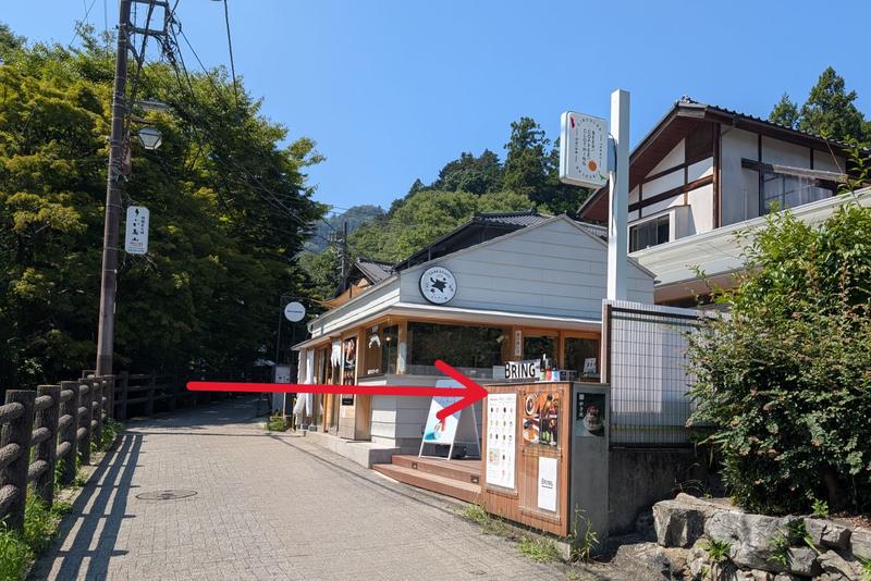 高尾山口駅から徒歩3分。登山道へ続く道沿いに、センスあふれるカフェが見えてきます。