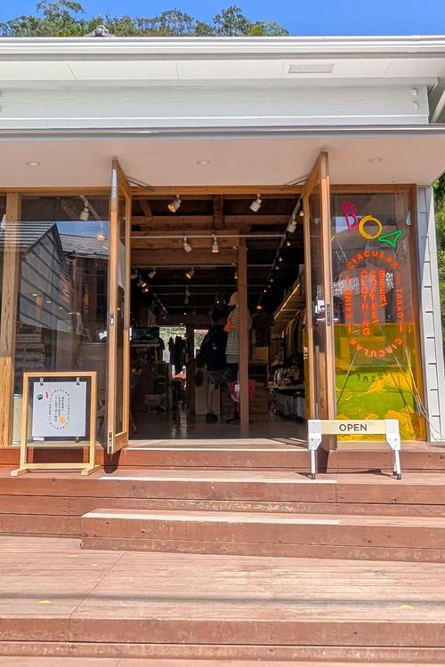 木のぬくもりを感じる階段を上ると、古民家をリノベーションした『BRING CIRCULAR TAKAO』が現れます。