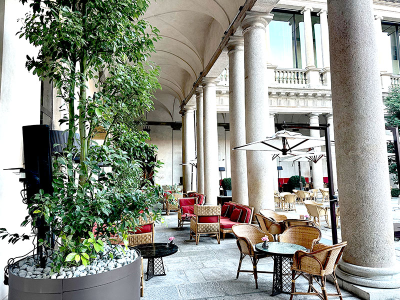 ミラノでの滞在拠点となったのは、16世紀から続く格式高いホテル「ポートレート・ミラノ」。バロック建築の最も古い例として知られる「旧大司教座神学校」を大規模に改修したものです。