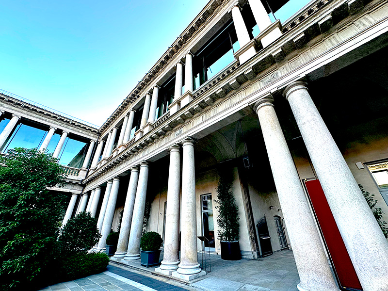 一歩足を踏み入れると、その重厚な歴史と洗練された現代性が融合した空間に思わず圧倒。ミラノのファッション地区の中心という立地もあって、歴史的な建造物の荘厳な雰囲気と、いまなおアップデートされ続ける最新の文化との交差を感じさせます。