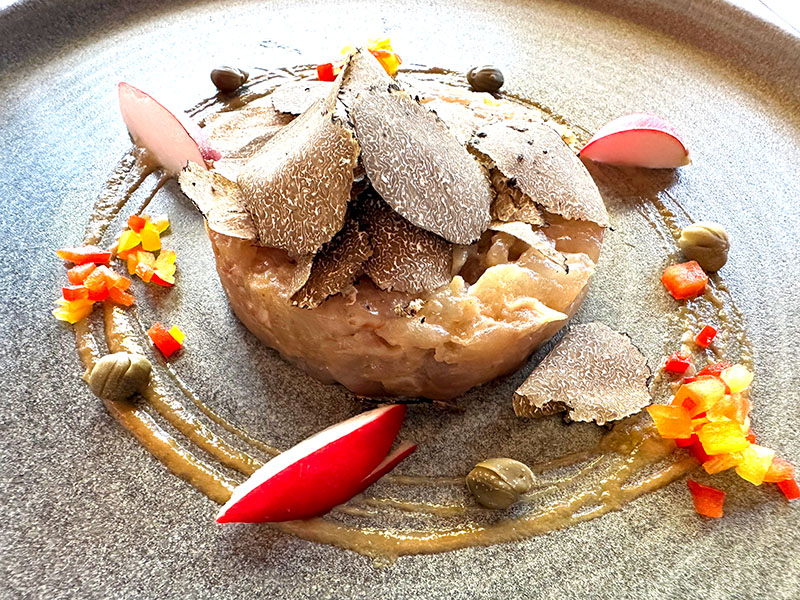 コモ湖の景色を一望できる最高のロケーションで、魚のタルタル風トリュフ添えや、牛肉と鴨肉のローストに舌鼓を打ちながら、これまでの旅の思い出話に花を咲かせました。