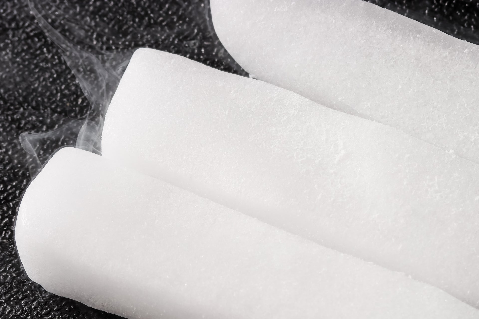 今日は「ドライアイス」のお話です。スーパーで冷凍食品を買うとき、宅配便で生鮮品が届くとき、当たり前のように入っていた、あの白い煙が出るドライアイス。