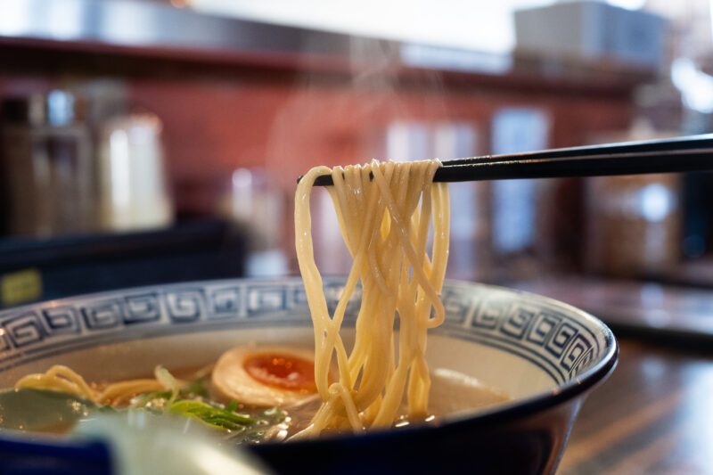 うま味を重ねられるだけ重ねたら良いかといえば、答えはノー。最終的に豚骨のうま味が浮かび上がらなければ、豚骨スープにはならない。だからこそ、松尾さんは「塩梅が重要なんです。極力シンプルに、それでいて深みを出していく」と言葉に力を込めた。豚骨の量をできるかぎり増やし、その豚骨出汁が引き立つようにうま味を添えていく。こうして油や塩気に頼らずに、風味がドライブするスープを追求してきた。