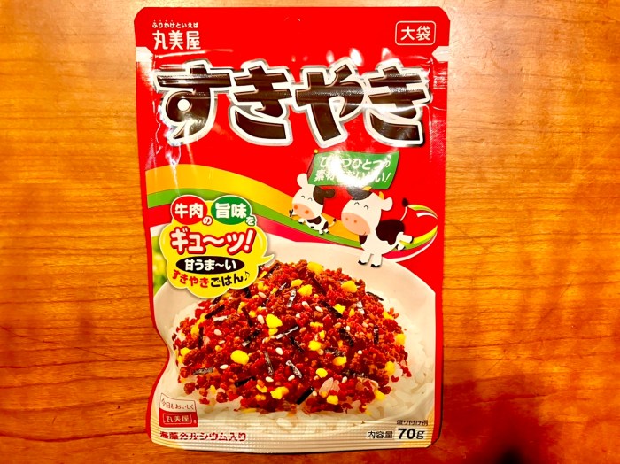 最初から最後まで、普通にすきやき味のふりかけでごはんを食べた感覚でした。おいしかったです。