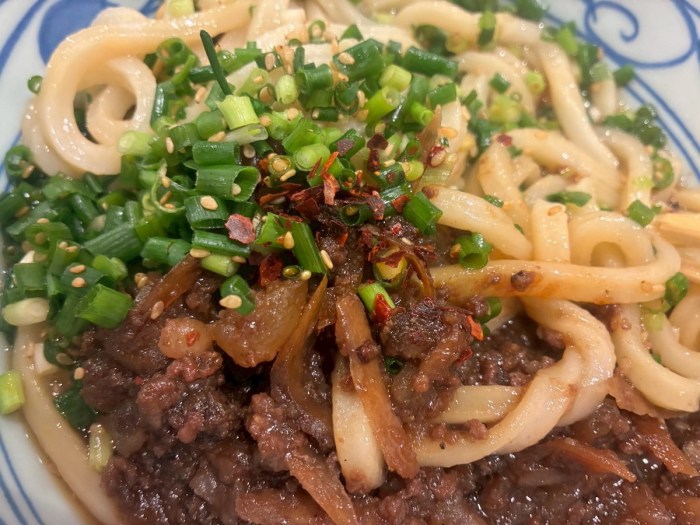 気になるお味はというと、飛騨牛の脂の甘みと旨味が濃厚なしぐれ煮となって、モチモチうどんに絡んでおいしい。ごまが香るネギのシャキシャキ感も良いアクセントだ。