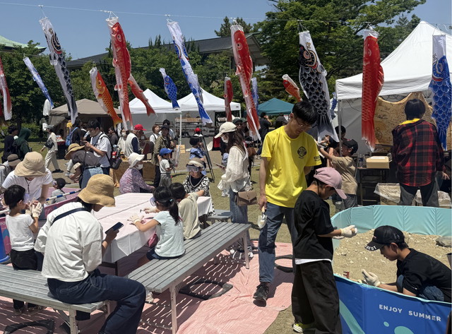KIDSエリアでは、射的や金魚すくいといった昔ながらの縁日に加え、キッズドーム(おもちゃ・お菓子の家)やふわふわ遊具、宝探しや発掘アドベンチャーなど、親子で楽しめるコンテンツが充実しています。一部のコンテンツは写真でご紹介します。