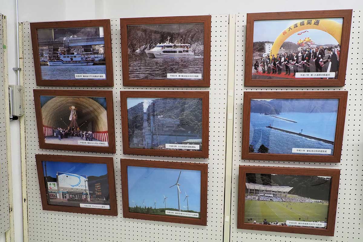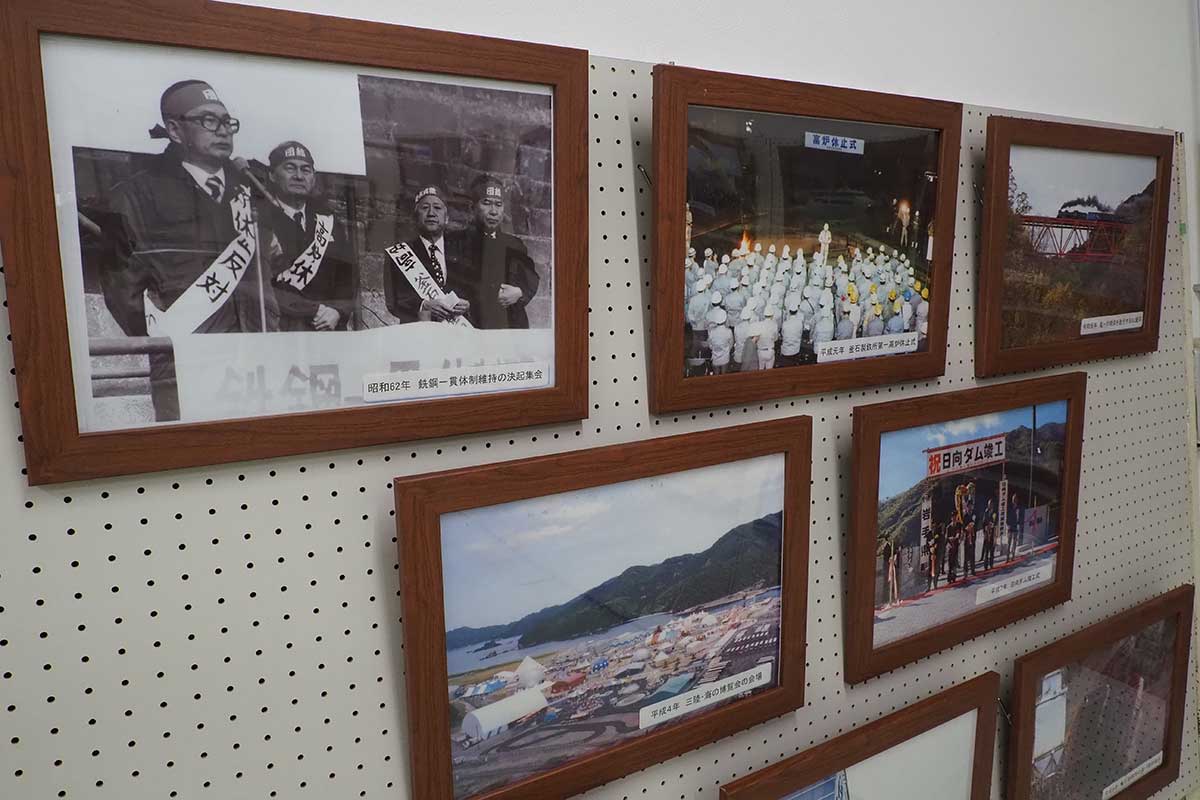 写真パネルでは、釜石大観音や鉄の歴史館、シープラザ釜石などの建造物が完成したことを祝う催し、日本選手権を7連覇した新日鉄釜石ラグビー部のパレード風景、市役所議場前で座り込みをする市職員や働く人々によるデモ活動など、釜石の昔の様子を見ることができる。
