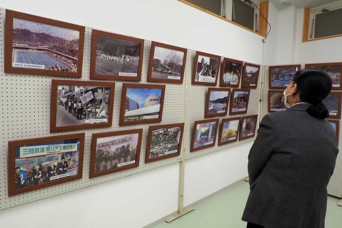 有料道路の開通、市民のデモ行進、市場に水揚げされたあふれんばかりのサケ、高炉解体、観光船はまゆりの就航、世界遺産登録のお祝い…。釜石市鈴子町の市郷土資料館の企画展示室に並んでいる写真だ。1市(釜石)4村(甲子、鵜住居、栗橋、唐丹)が合併し、現在の釜石市が形成されて今年で70年。さまざまな歴史が積み重ねられてきた。まちの動きを見せる展示物から「釜石を良くしようとする市民の力」が伝わってくる。