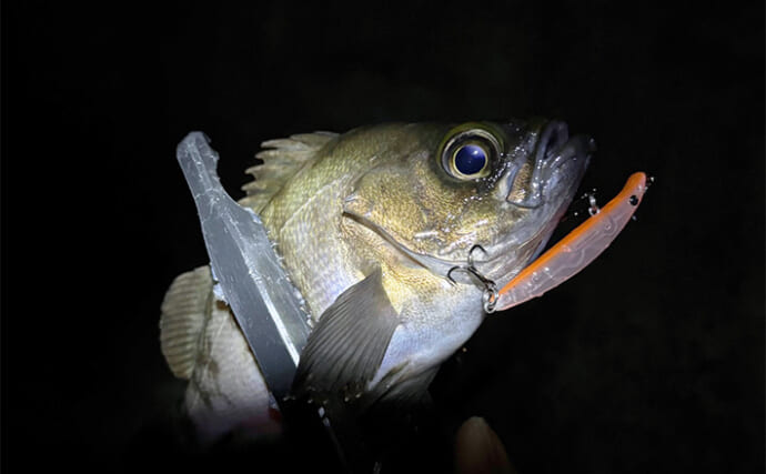 バチ抜けの時期はメバルの活性が高いため、わりと簡単に釣れてしまうが、状況に応じた仕掛けの工夫も求められる。プラグで食わなければバチを模したワームを使って、ふわふわとアクションさせよう。