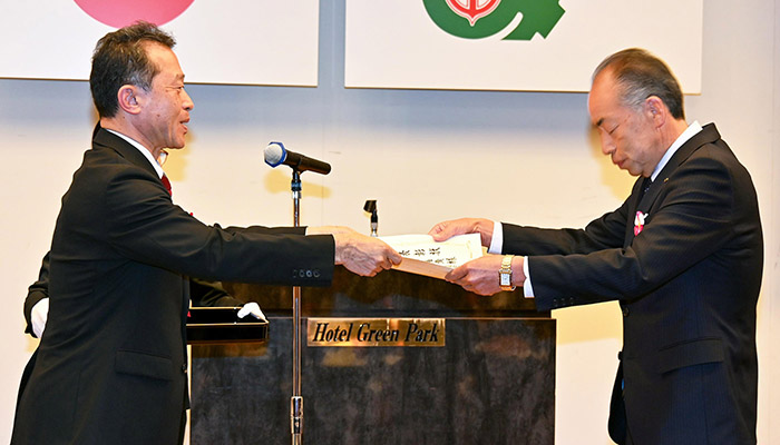このうち、県知事表彰では、伊賀地域から優良組合として伊賀生コンクリート協同組合、組合功労者として三重県レッカー事業協同組合前理事長の北森浩貴さんが表彰された。