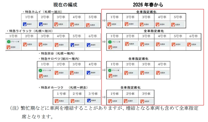 JR北海道は19日、旭川方面の特急列車について、2026年春から「全車指定席化」すると発表しました。