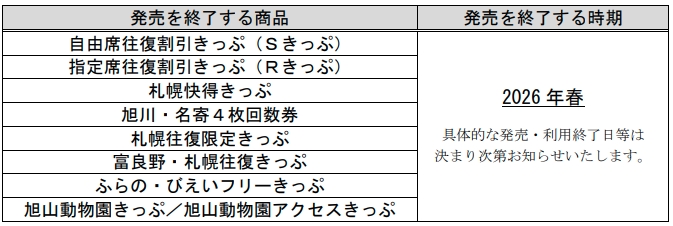 また、旭川方面に加えて、特急北斗、すずらん、おおぞら、とかちに設定している「特急トクだ値14」「特急トクだ値1」については、2026年春以降、価格の柔軟性を持たせたうえで「特急トクだ値1」に統一するということです。
