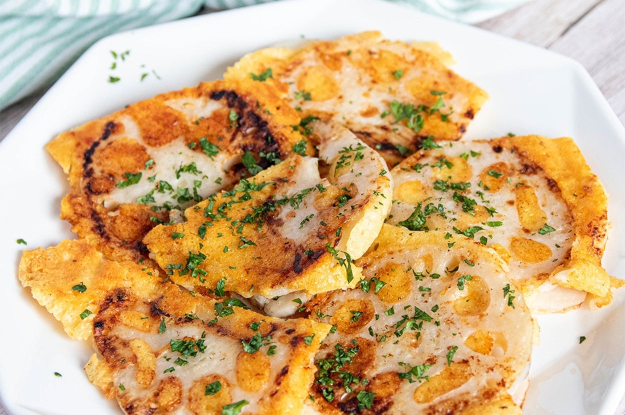 チーズの香ばしいカリカリ食感と、れんこんのシャキッとした歯ごたえの組み合わせは、一度食べたらやみつきになること間違いなし!