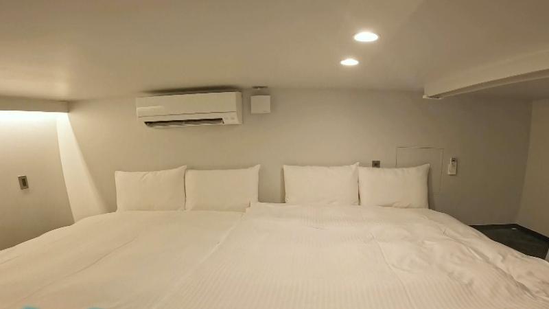 青と白を基調とした部屋は、広々としていて壁にはかっこいいデザインも描かれています。